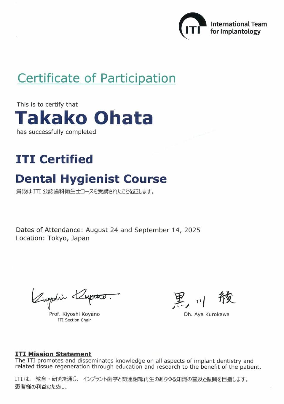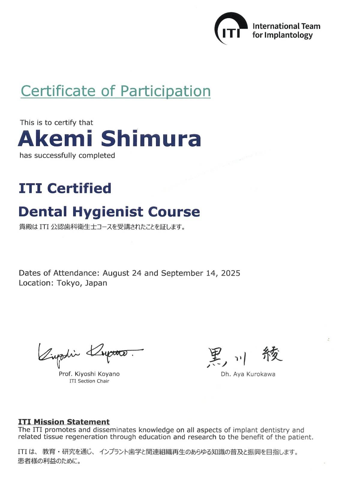11月 JSOI認定講習会 みなとみらい(MM)インプラントアカデミー 修了 |